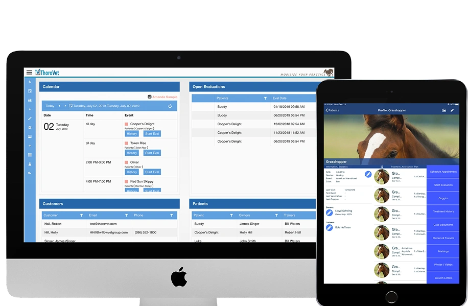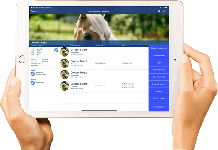 ThoroVet is an affordable, easy-to-use, comprehensive cloud-based practice management system, with access to all your medical records & billing, with a powerful Quickbooks® Online sync. Designed to work offline on farm calls – even without WiFi, right from your iPad. Created exclusively for Equine Veterinary Practitioners!